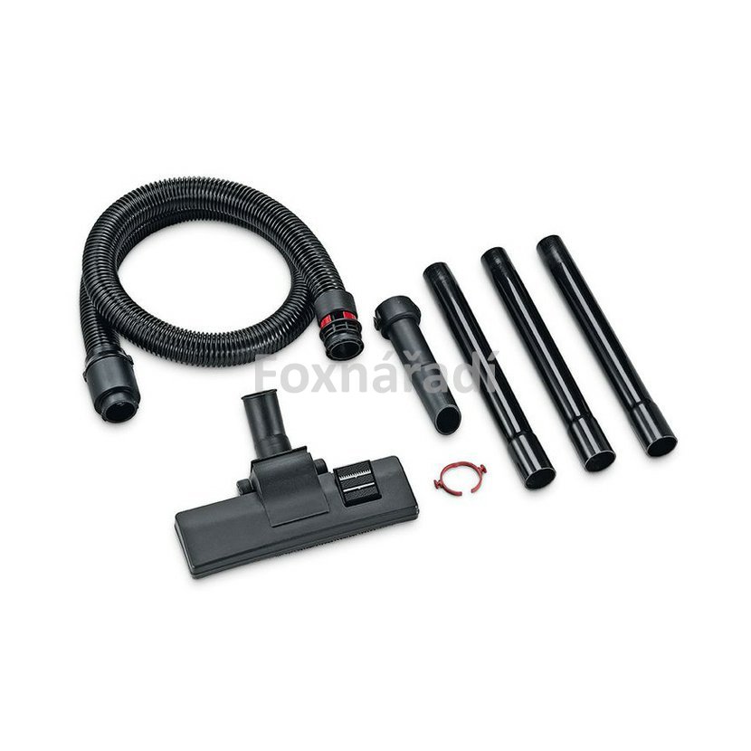 Standardně dodáváno: sací hadice 32mm x 1,5m - bajonet, závitový úchyt Clip s vedlejší regulací vzduchu, Clip-rychloupínací kroužek červený, 3x prodlužovací trubice 360mm - plast,