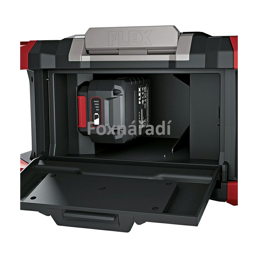 • Robustní rádio na stavbu, vhodné pro příjem DAB+ a FM. • Plný, čistý zvuk díky 6 reproduktorů s 2x10 W, 2x20 W, 30 W basy a funkcí Boost. • Individuální nastavení ekvalizéru pro špičkovou kvalitu zvuku. • Automatické vyhledávání stanic a 10 kanálů pro uložení stanic. • S integrovanou nabíječkou pro akumulátory 12/18 V. Nabíječka automaticky spustí nabíjení při zapojení síťové zástrčky 230V. • Akumulátorové pracovní rádio je kompatibilní se skladovacím a přepravním systémem FLEX STACK PACK. Lze jej tedy snadno přepravit na staveniště s dalšími boxy na nářadí a příslušenství. Zámkové rychloupínací západky umožňují rychlé, flexibilní a snadné připojení. • Osvětlený displej je umístěn pod úhlem. To zajišťuje bezproblémový výhled na displej a pohodlné ovládání, i když je součástí systému transportních boxů STACK PACK. • S integrovanou technologií Bluetooth®, AUX vstupem, USB-C připojením a možností dobíjení chytrých telefonů, tabletů. • LED – ukazatel stavu kapacity akumulátoru. • FLEX Aku-systém: provoz se všemi 12,0 a 18,0 V akumulátory FLEX.