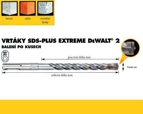 Parametry produktu Vrták SDS-Plus 15,0x150/200mm 2-břité, DeWalt